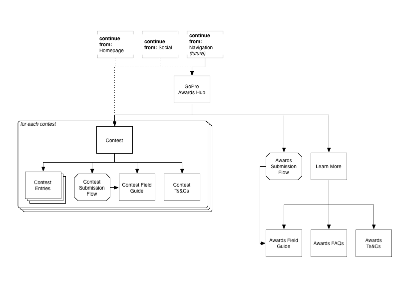 To increase instances in which a user might be compelled to submit, the stakeholders requested that users be able to submit both to individual contests as well as to the overall GoPro Awards bucket.
