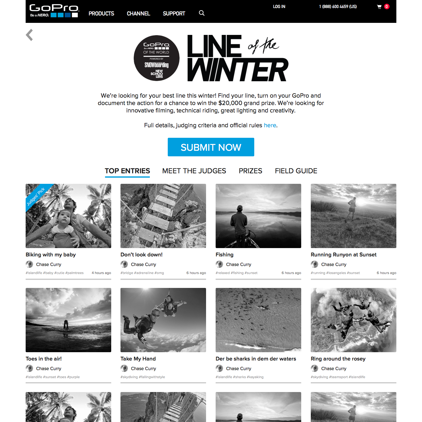 GoPro Awards came to me as a project spearheaded by the Content Acquisition Team, whose goal with the project was to increase the number of photos and videos submitted to GoPro, which then could be used for promotional material. In exchange for the submissions, content creators would have the chance to be rewarded with monetary prizes.